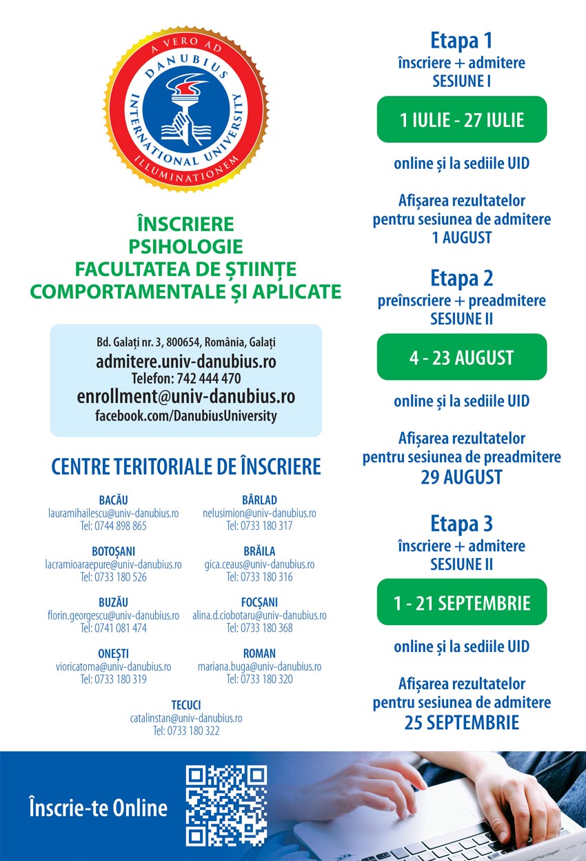 Jovială și sociabilă, Daria-Elena Iftode este studentă, în anul al II-lea, la specializarea “Psihologie”, a Facultății de Comunicare și Relații Internaționale din cadrul Universității “Danubius” din Galați. Tânara a ales să urmeze cursurile “diamantului de pe Dunăre” datorită colectivului profesoral tânăr și a bazei materiale vaste pe care instituția o oferă, fiind motivată și de succesul absolvenților universității.
