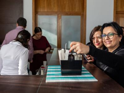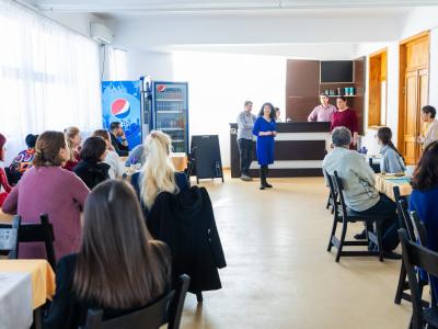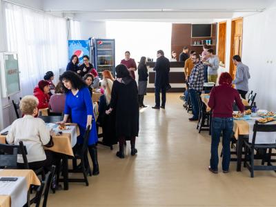 ENGLISH VERSION La ultimul nivel al corpului principal al Universității funcționează, încă de la inaugurarea sediului situat la confluența Siretului cu Dunărea, Cafeteria, ce oferă servicii de tip fast-food pentru studenți, cadre didactice și ceilalți membri ai spațiului academic danubian. Într-un ambient adecvat (spații închise și terasă) studenții și profesorii lor socializează și comunică informal, stabilind astfel coordonatele unei integrări fără complexe în cadrul viitoarelor profesii. Atmosfera sobră și elevată a ambientului, respectată de cei care solicită servicii de profil alimentar, se constituie într-un model de frecventare decentă a unor astfel de incinte care stimulează comunicarea interpersonală și promovează spiritul și cultura comunității.